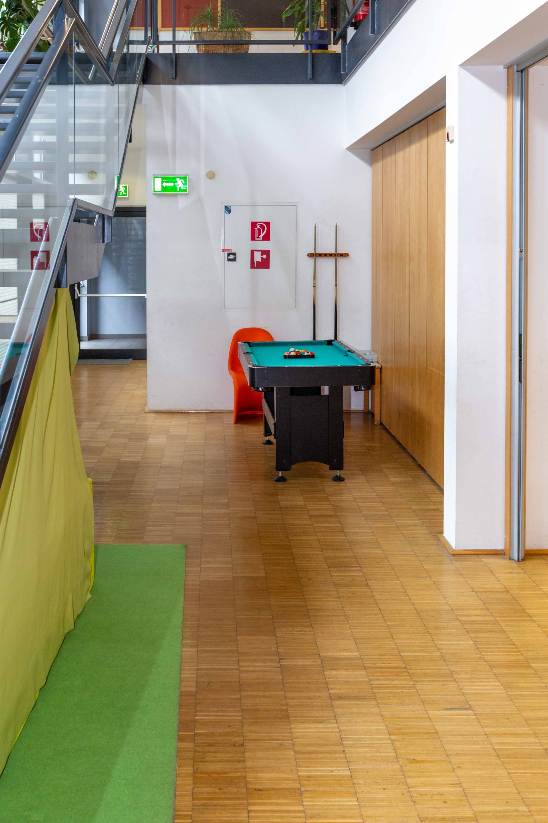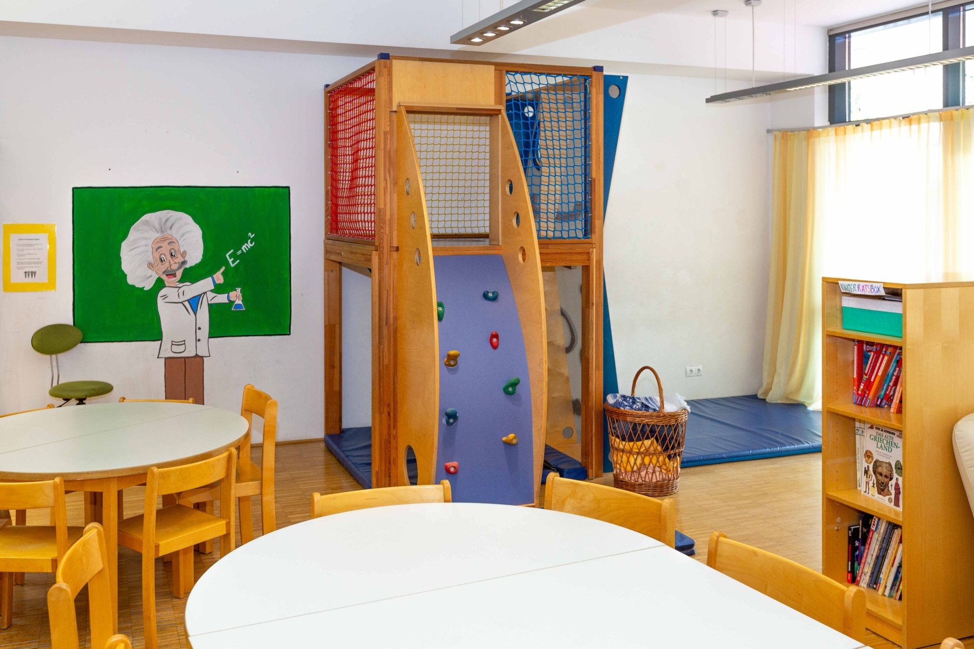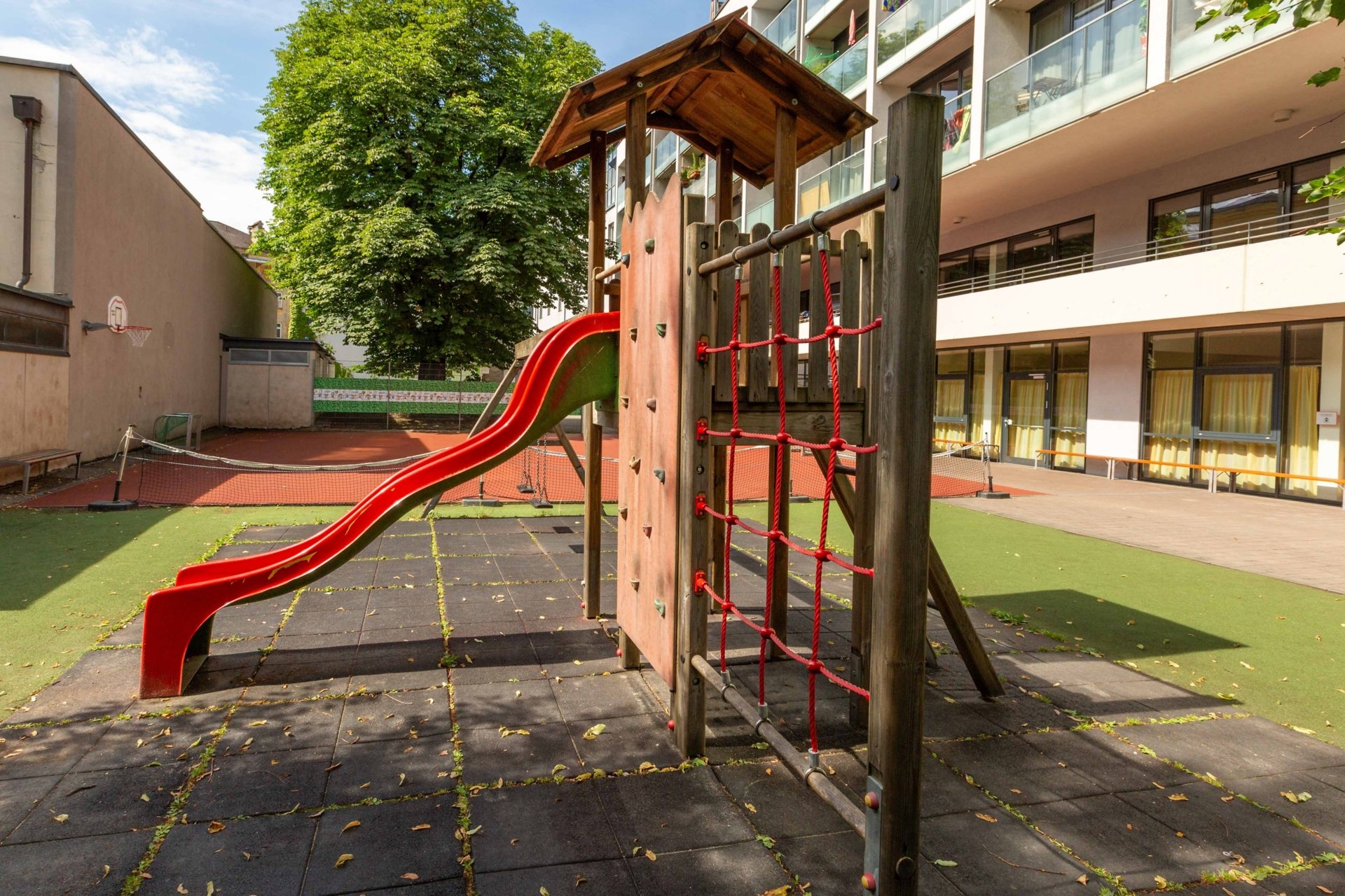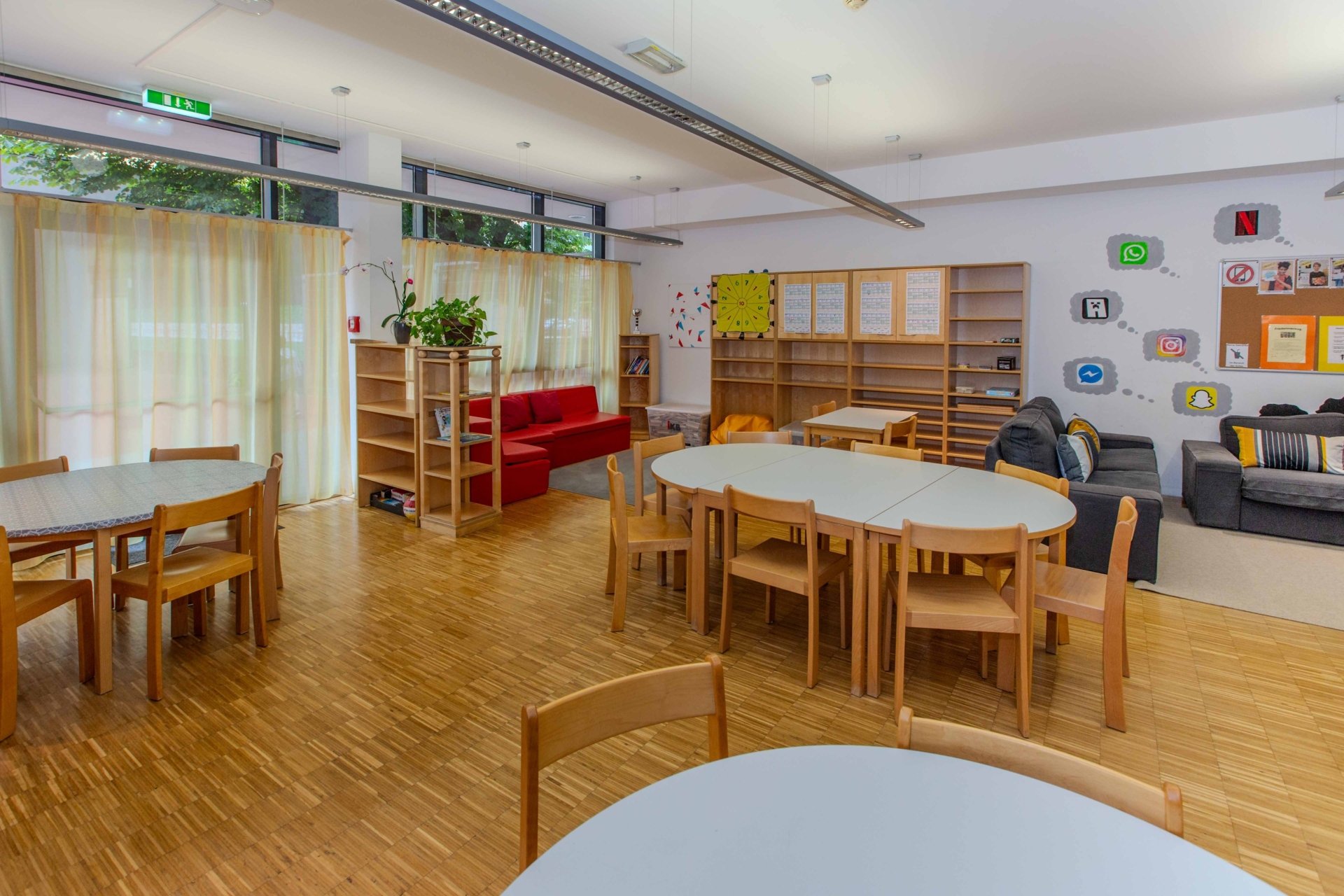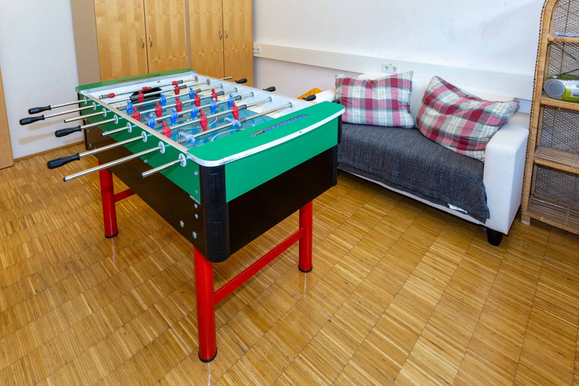 | Rooms | • 3 Gruppenräume, sowie 3 Lernzimmer • Speisesaal • Möglichkeit zur Mitbenützung des Turnsaals der Schule 2x wöchentlich • Multifunktionsraum • Tischfußballraum • Chillecke • Billardtisch • Breiter Flur mit abschließbaren Spinds • Garten mit Fußballplatz, Tischtennistisch, Sandkiste, Klettergerüst, Spielhaus, Balancierparcours und Go-Kartbahn • barrierefreier Zugang |