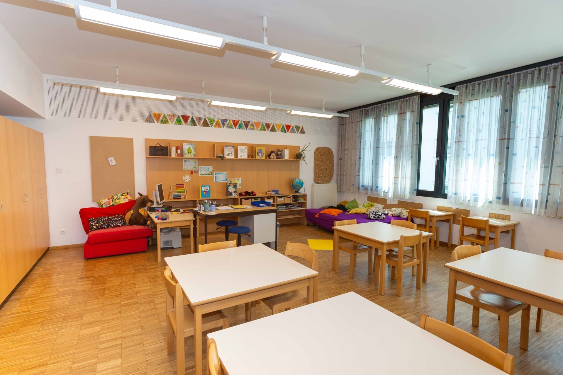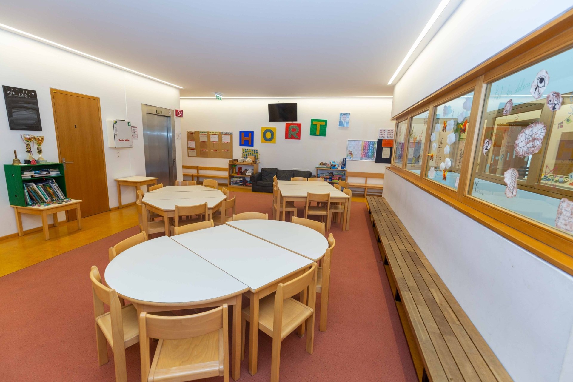 | Rooms | • Offener Willkommensbereich • 2 Lernzimmer • 2 Gruppenräume • Turnsaal • Werkraum • Bauraum und Spielzimmer • Speisesaal • Garten (gemeinsam mit dem Kindergarten genutzt) |