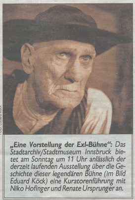 Il palcoscenico dell'Exl rappresenta come nessun altro l'epoca d'oro del teatro popolare tirolese. La mostra "Una rappresentazione dell'Exl-Bühne", allestita nell'archivio/museo civico, ha portato gli attori davanti al sipario.