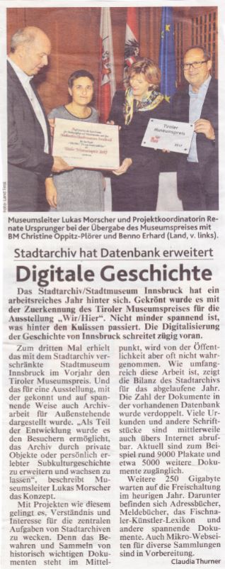 lanciato nel 2014 come progetto di raccolta, l'Archivio della subcultura di Innsbruck fornisce i primi approfondimenti su questa altra storia della città di Innsbruck. Per molto tempo la cosiddetta sottocultura non è stata considerata degna di essere documentata o raccolta. Tuttavia, la sottocultura è sempre stata e continua a essere socialmente formativa e pionieristica per un approccio alla cultura giovanile in continua evoluzione. In questa mostra, la storia alternativa di Innsbruck è stata raccontata sulla base di luoghi e protagonisti attivi in quella città e trattata in relazione all'atmosfera anticulturale della "Terra Santa del Tirolo". Basata su varie scene musicali, la mostra invitava i visitatori a compiere un viaggio attraverso luoghi, scene e musicisti diversi. Sono stati presentati una Innsbruck diversa e luoghi dimenticati da tempo come la Kennedyhaus, il Komm, l'Akt, la Haus am Haven e l'Utopia, ma anche bastioni della cultura ancora esistenti come lo Z6, la Workstation e la Treibhaus. La mostra ha offerto un viaggio nel passato fino al presente della sottocultura di Innsbruck, che è anche responsabile del modo in cui la città è oggi.