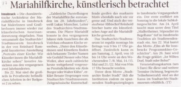 Nel corso dei secoli, la caratteristica architettura della Mariahilfkirche ha ripetutamente ispirato pittori e grafici ad adottare un approccio artistico a questo edificio sacro. Un numero particolarmente elevato di raffigurazioni è stato creato nel XX secolo. Molte vedute sono state acquisite negli ultimi anni dalla parrocchia di Mariahilf, che ha utilizzato queste opere d'arte anche per decorare le prime pagine dei suoi bollettini parrocchiali. Tra gli artisti figurano nomi noti del Tirolo come Gerhild Diesner e Max Weiler, ma anche personalità in gran parte dimenticate come Alois Burger e Walter Kühn. Gli artisti contemporanei riprendono ancora il motivo. Anche il defunto ex vescovo Reinhold Stecher ha posato il suo sguardo artistico sulla Mariahilfkirche.