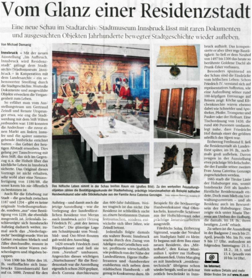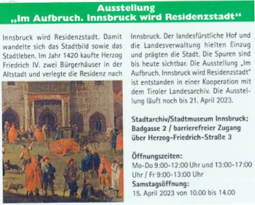 Innsbruck diventa sede reale. Questo cambiò il paesaggio e la vita della città. Nel 1420, il duca Federico IV acquistò due case cittadine nel centro storico e trasferì la residenza a Innsbruck. La corte reale e l'amministrazione provinciale si trasferirono e lasciarono il loro segno sulla città. Le tracce sono visibili ancora oggi.