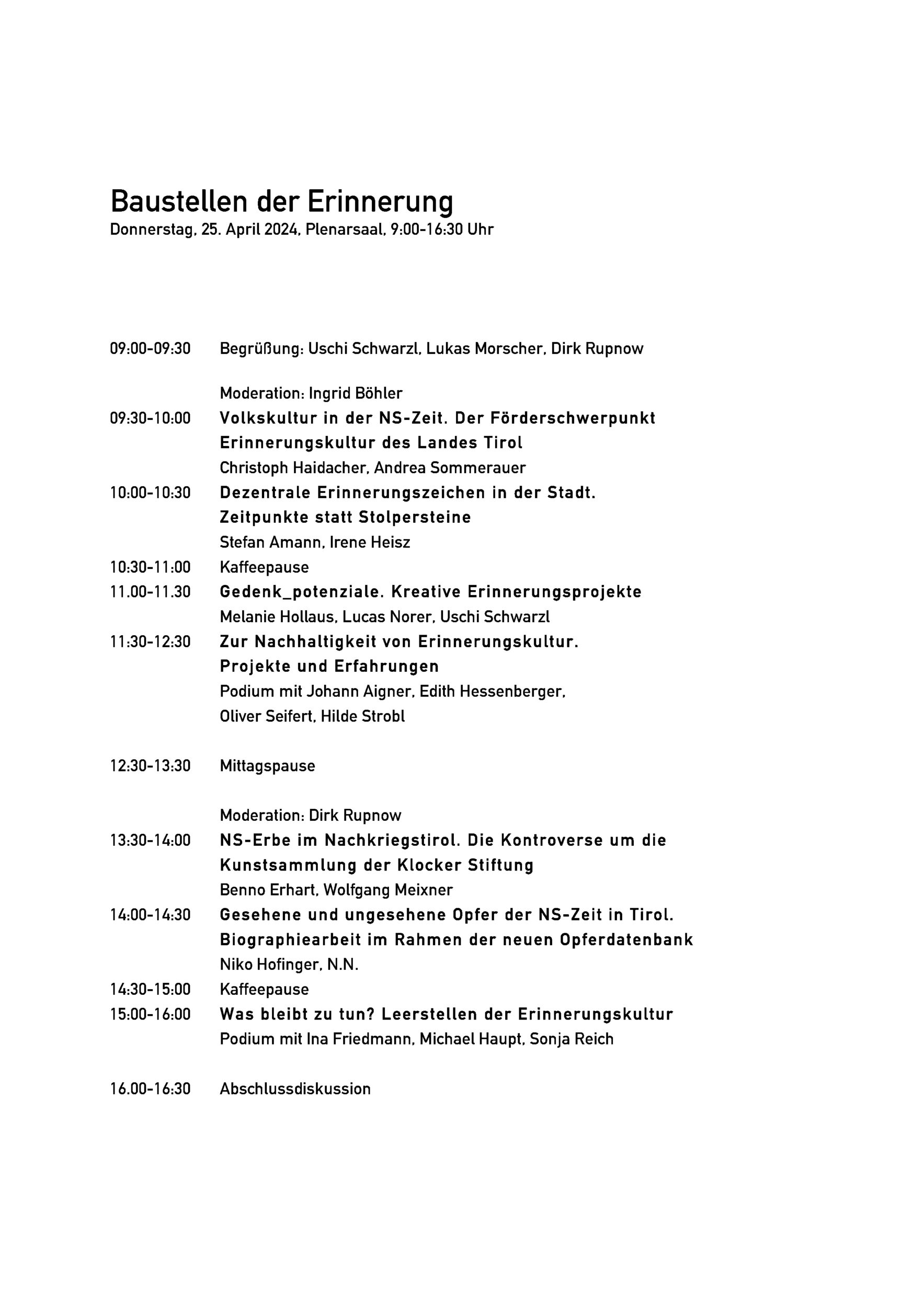 Non era raro che questi progetti superassero i confini nazionali e coinvolgessero il Vorarlberg e l'Alto Adige. L'attenzione era indubbiamente rivolta al nazionalsocialismo e ai suoi continuatori e successori, ma anche altre storie dimenticate stanno venendo sempre più alla ribalta.