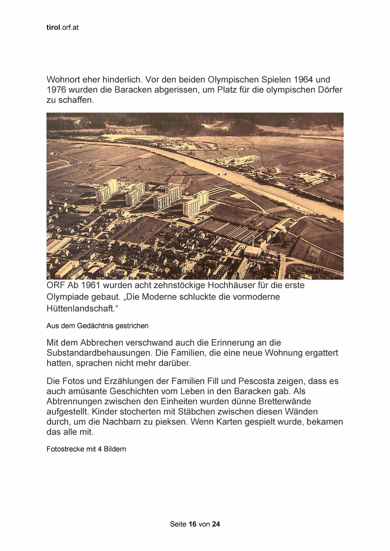 Le baracche costruite in varie parti della città durante la Prima guerra mondiale sono state utilizzate per lungo tempo a causa della carenza di alloggi. Nel corso degli anni, gli edifici di fortuna hanno lasciato il posto a case moderne, mentre la carenza di alloggi è rimasta un problema costante anche dopo la Seconda Guerra Mondiale, a causa dei profughi e dei danni provocati dai bombardamenti. Gli ultimi insediamenti precari scomparvero solo prima dei Giochi Olimpici del 1964 e del 1976.