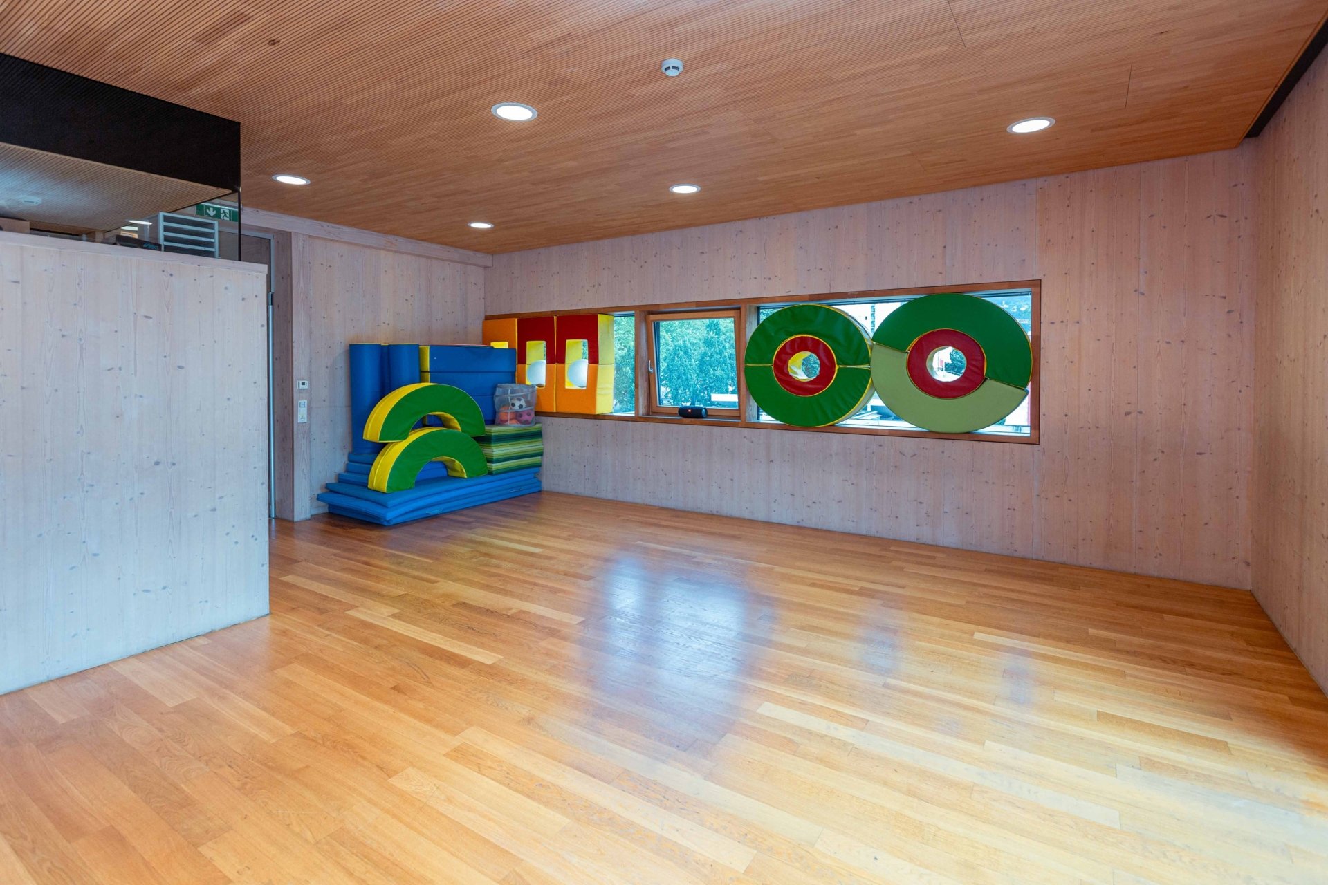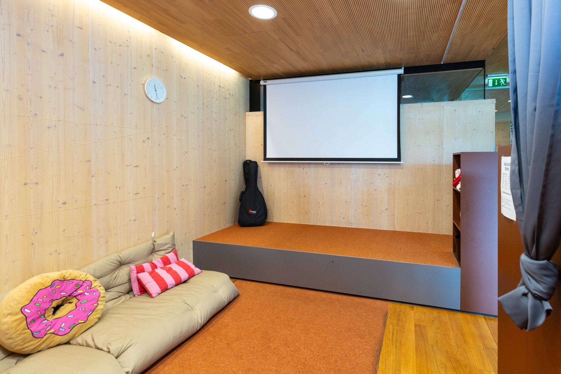 | Räumlichkeiten | • 4 Gruppenräume (Lernzimmer, Kreativraum. Bewegungsraum und Spielzimmer) • Großzügige Terrasse mit Tischtennistisch, Hängematten und Sitzkissen • Breiter Flur mit Jausenecke, Tischfußball und Billard • Turnsaal • Medienecke mit “Chilllounge“, Musikanlage, Beamer und Leinwand • Garten • barrierefrei |
